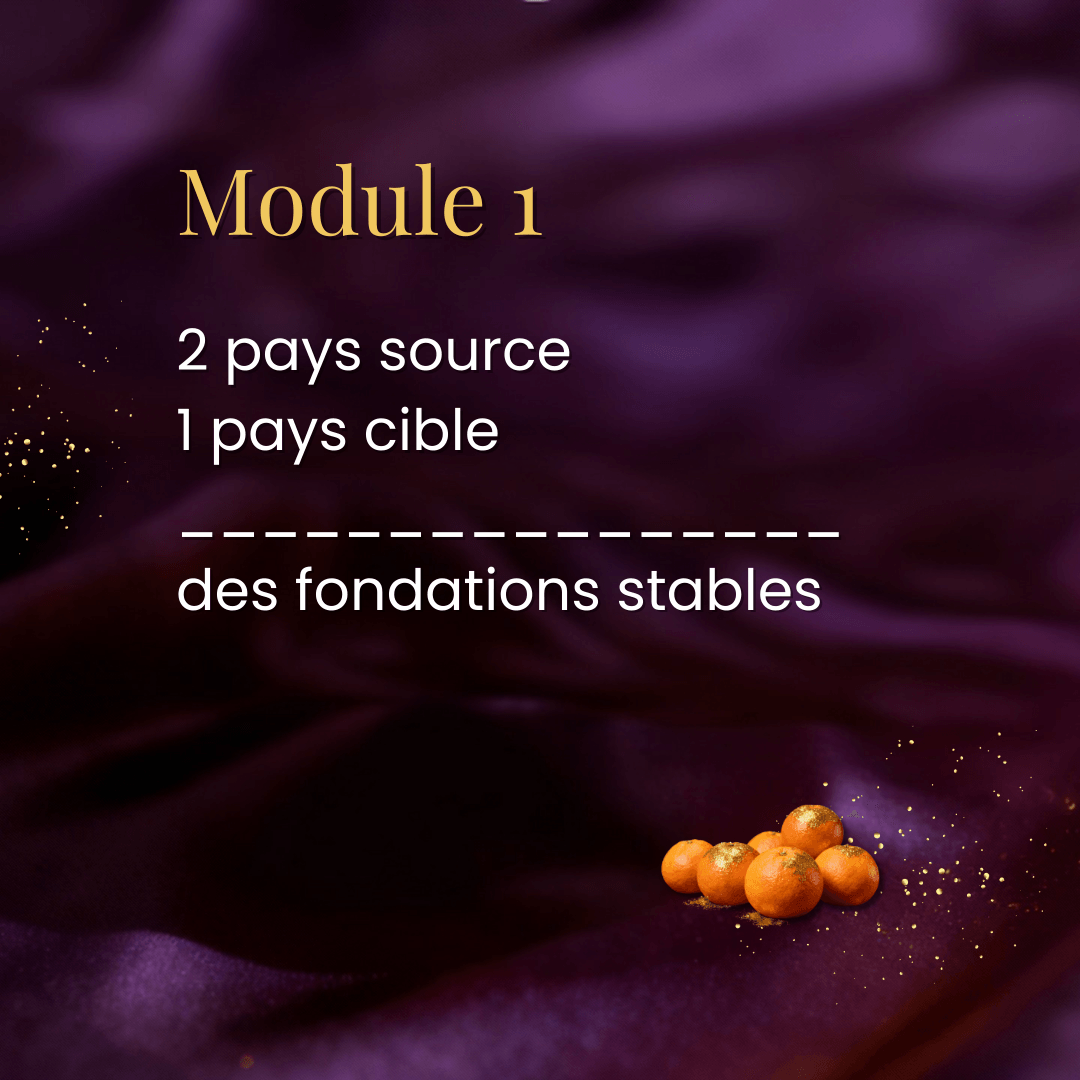 Après le module 1, tu auras identifié 2 pays source et 1 pays cible où tes compétences peuvent réellement se vendre.