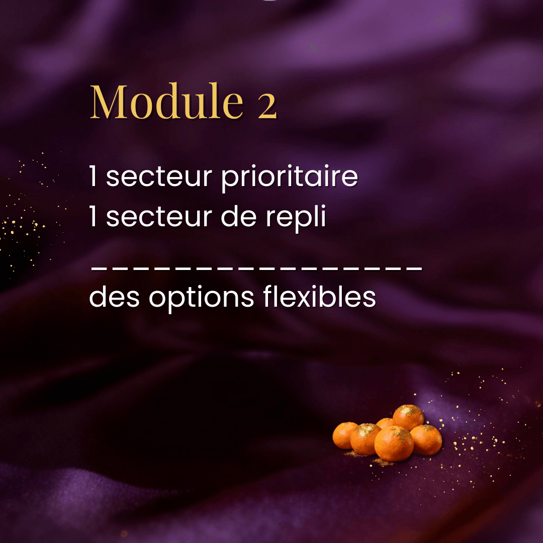 Après le module 2, tu auras identifié 2 secteurs porteurs qui assureront ta rentabilité sur au moins 5 ans.