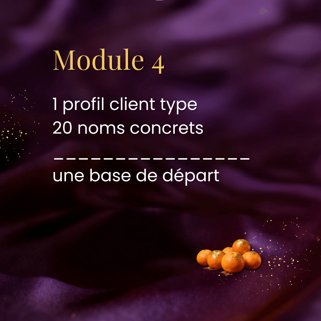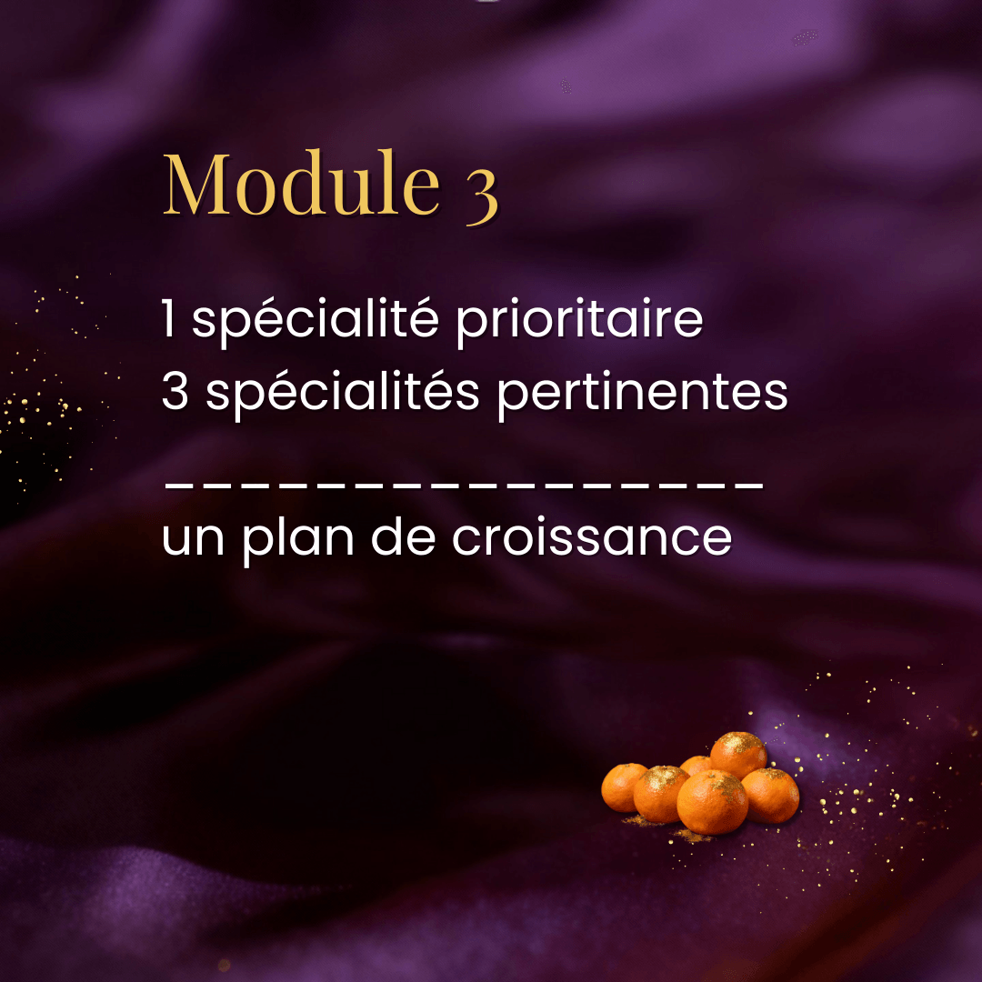 Après le module 3, tu auras identifié 4 spécialités que tu pourras combiner pour optimiser ton chiffre d'affaires.